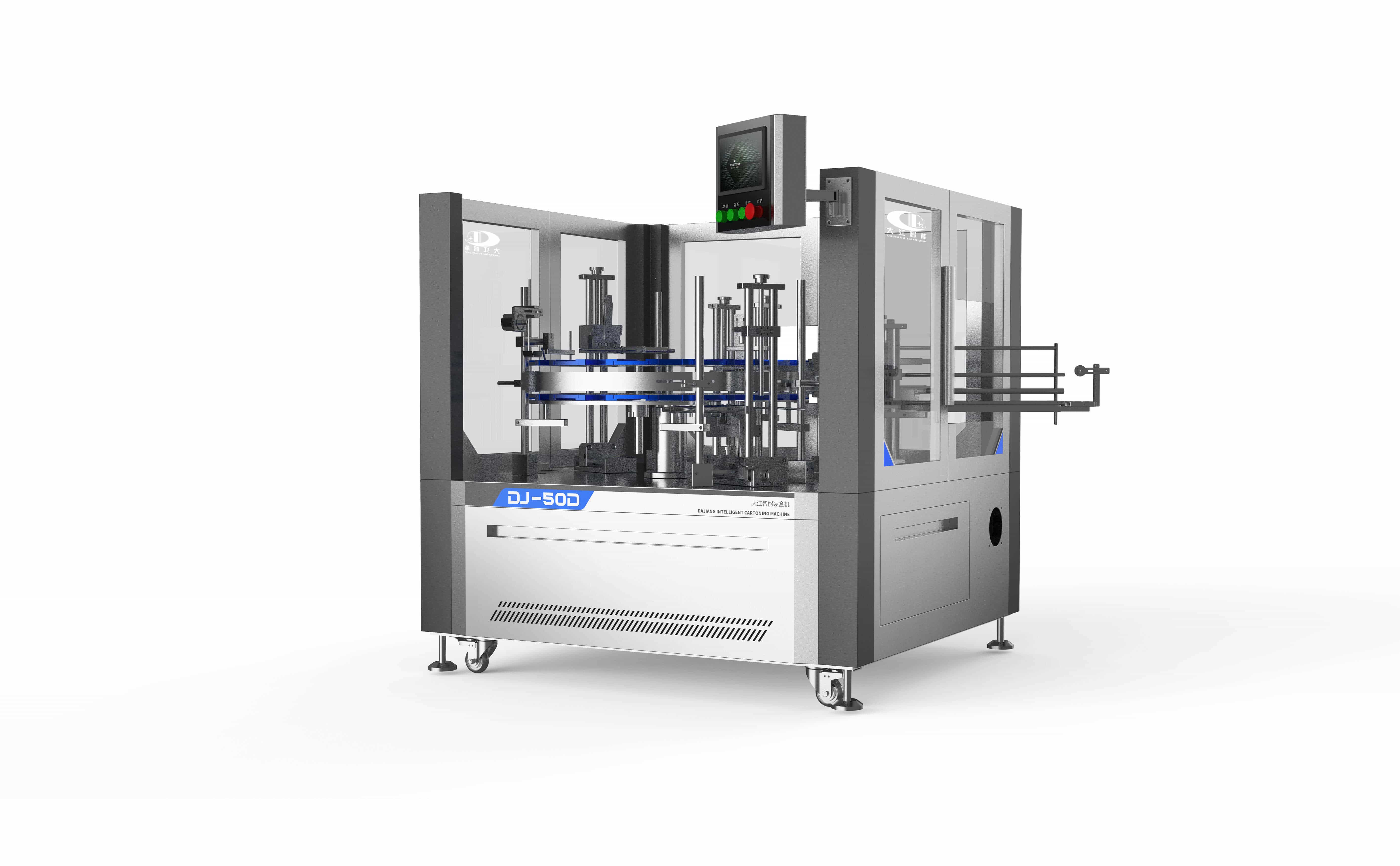 DJ-50多功能立式裝盒機適應(yīng):制藥行業(yè),食品行業(yè),化妝品行業(yè),電子行業(yè)紙盒立式自動成型包裝。